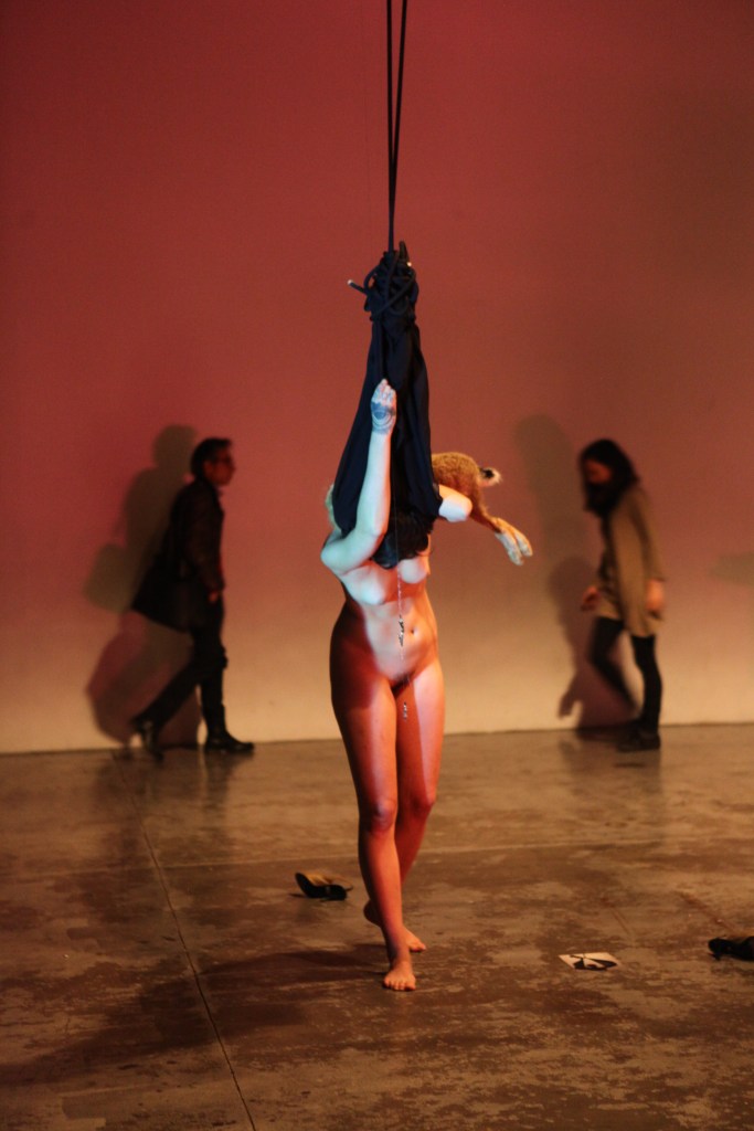 Nönude Bodyïn, Le Corps d’Alice, a Hole in the Wall, Le Générateur 2015. Corps dansé Naomi Shka. Le lièvre Giacomo. Regard photographique Bernard Bousquet.