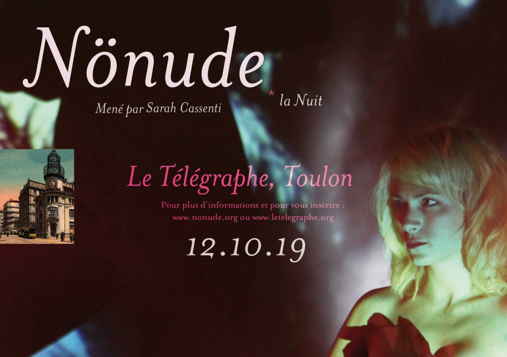 Espace scénique, d’expérimentation corporelle, visuelle, sonore et psychique imaginé par Sarah Cassenti – le Nönude se traverse par le geste du dessin et notre corps mouvant. Le Nönude évolue : les sessions se déroulent la nuit, dans cette zone intermédiaire, en un événement complet, avec et pour les nönudiens, plasticiens, danseurs, thérapeutes, écrivains, musiciens, vidéastes participant, il émeut notre part désirante. Le Nönude se déroule au sein d’un lieu engagé et festif accueillant le projet. L’équipe du lieu, le public et la musique nous entourent et participent de l’événement.