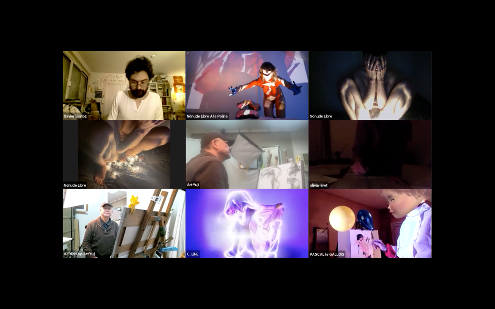• Le Nönude Libre, expérience LIVE de dessin-vivant, crée depuis 2012 par Sarah Cassenti et mené avec ses Complices. Pour la quatrième fois, nous ouvrons un espace sur le world wide web • Corps-étoiles, Corps-mouvants en simultané : quatre scènes vivantes se déroulent sur le mix sonore et l’écriture video continus. Les participants dessinent, fêtent, dansent, nous créons ce nouvel espace-temps ensemble. L’exaltation monte, la beauté et la grâce éclatent. •