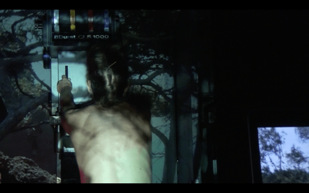 Regard photographique de Bernard Bousquet. Nönude Louverture de Sarah Cassenti, avec Maya Arbel et écriture video de David Coignard, exposition 3enUN, sur une invitation de Anne Dreyfus, le Générateur, 2014.