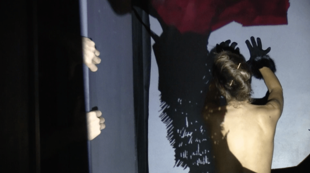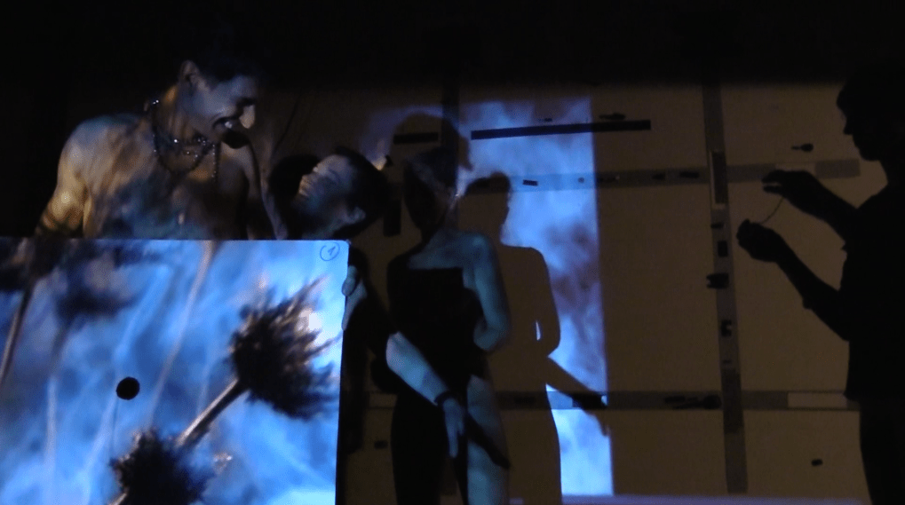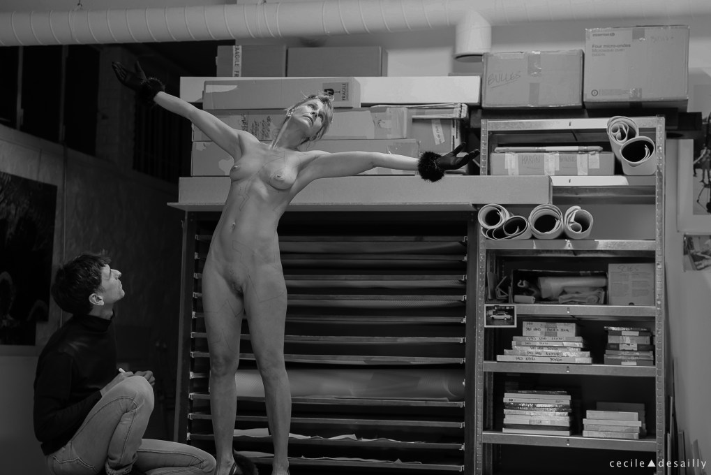 Les nönudiennes et nönudiens : danseurs, dessinateurs, sculpteurs, écrivains, vidéastes participent. Nönude Bodyïn, Le Corps d’Alice, a Hole in the Wall, imaginé par Sarah Cassenti, sur une invitation de Anne Dreyfus, Le Générateur, 2015. Regard photographique Bernard Bousquet •