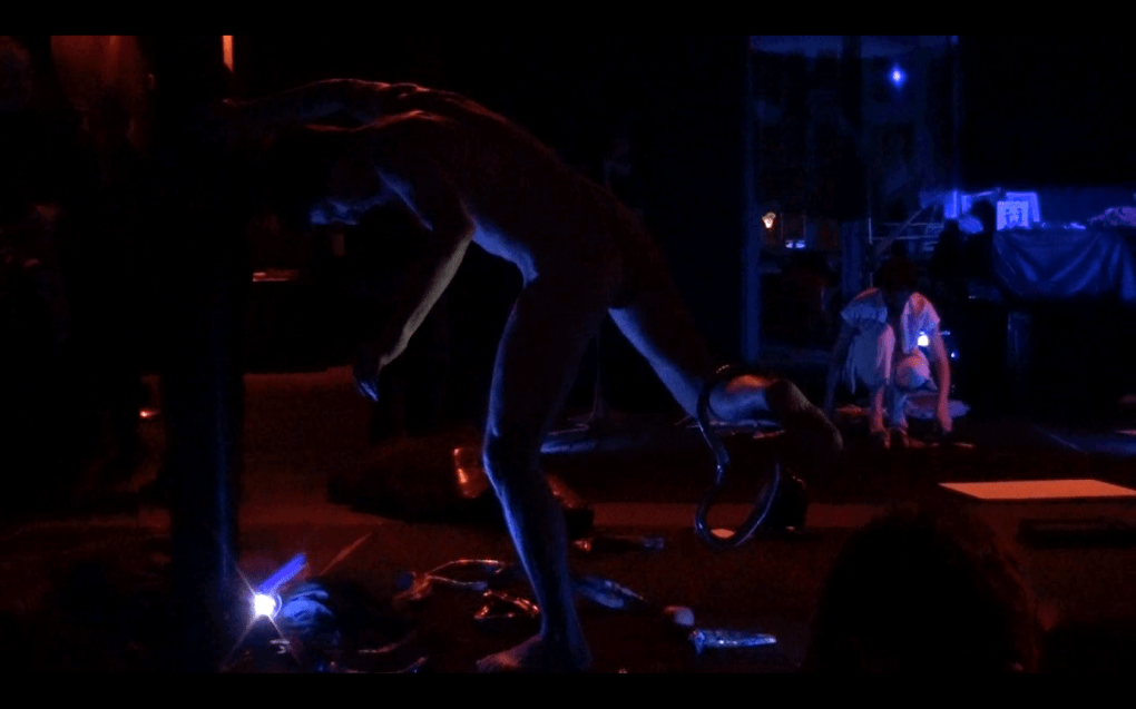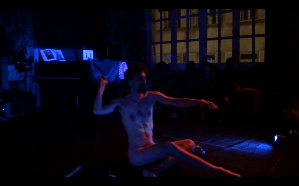 Nuit expérimentale HOMME AMOUR du Samedi 11 Janvier de 20h30 à 1h du matin, Le Telegraphe, Toulon. Conversation Electro : Céline Paul (et corps étoile) et Pascal Le Gallois. Corps dansés : Thomas Laroppe, Xavier-Numa Borloz. Ecriture Vidéo David Coignard. Scènes mouvantes Sarah Cassenti. Captation Alain Wagner. Accompagnement, lien Zoé Fornara. Myriam Lamotte et Body in Place & Vous, hommes.femmes, Nönudiennes, Nönudiens. Lieu : Le Telegraphe mené par François Veillon. Laura DMTN, Jean Girault, Max.