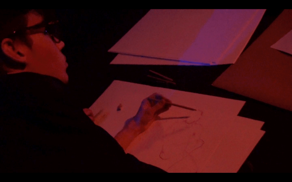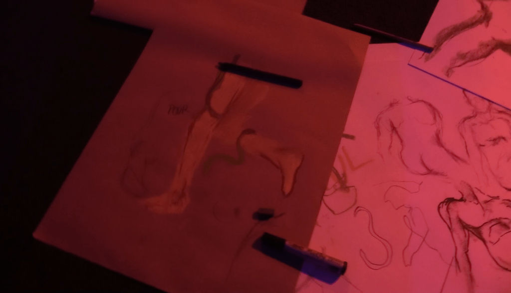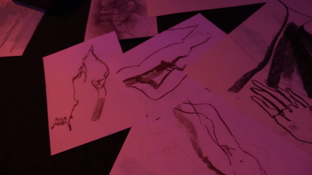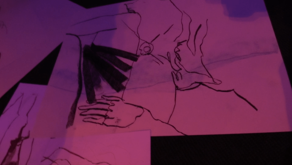 J’ai voulu reconnaître l’homme réel en m’appuyant sur la singularité et sur l’être étoile de Thomas Laroppe et Xavier-Numa Borloz, de l’homme aimable et aimé et non d’un homme fantasmagorique. Le dénuement merveilleux des gestes de X, le magnétisme doux et la sensualité de T, simplement. Pascal le Gallois et son timbre de velours. Cela a pu en déstabiliser certains. C’est un geste doux pour moi – un atelier géant pour vous. La lumière bleutée émane des yeux de Céline Paul.