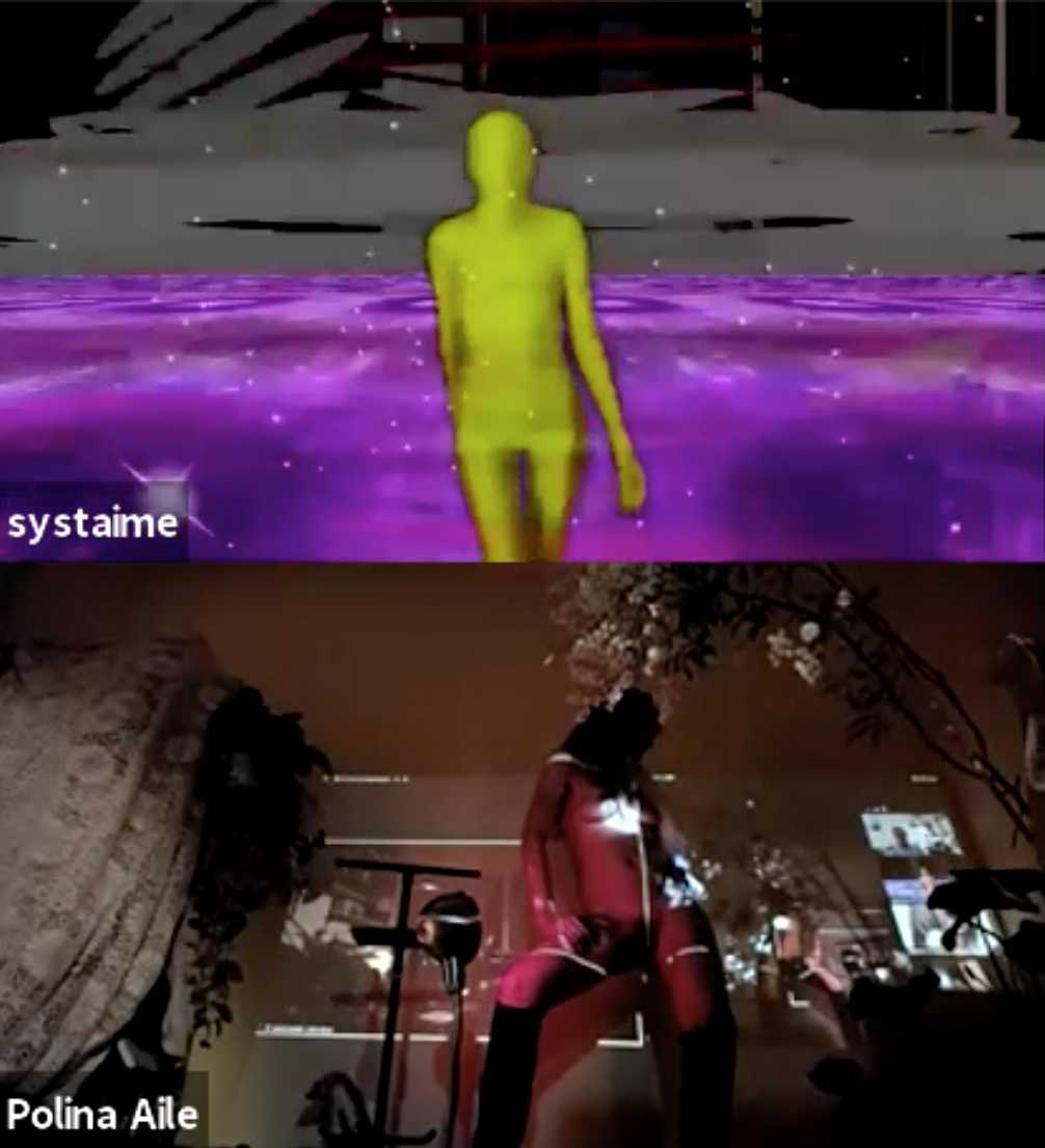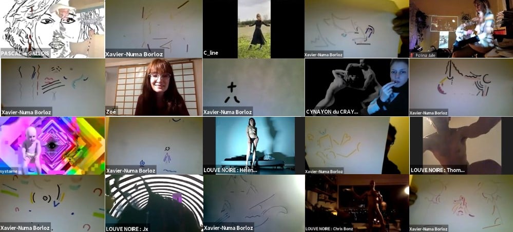 Corps-étoile / poses en mouvement : Thomas Laroppe et Christophe Bonzom • Hélène Defilippi ( Espace Xskills ). Live sonore : Jeffrey Louis-Reed (uk). Ecriture video : David Coignard. Video outdoor : Céline Paul. Accueil et pilotage Zoom : Zoé Fornara. Intermèdes : Michaël Systaime Borras x Aile Polina. Dessinateurs invités : Michel Lascault, Olivia Rivet, Pascal le Gallois, Cyneye, Xavier-Numa Borlos. Accueil : Zoé Fornara. Participants-dessinateurs-party danseurs-corps mouvants : Vous !