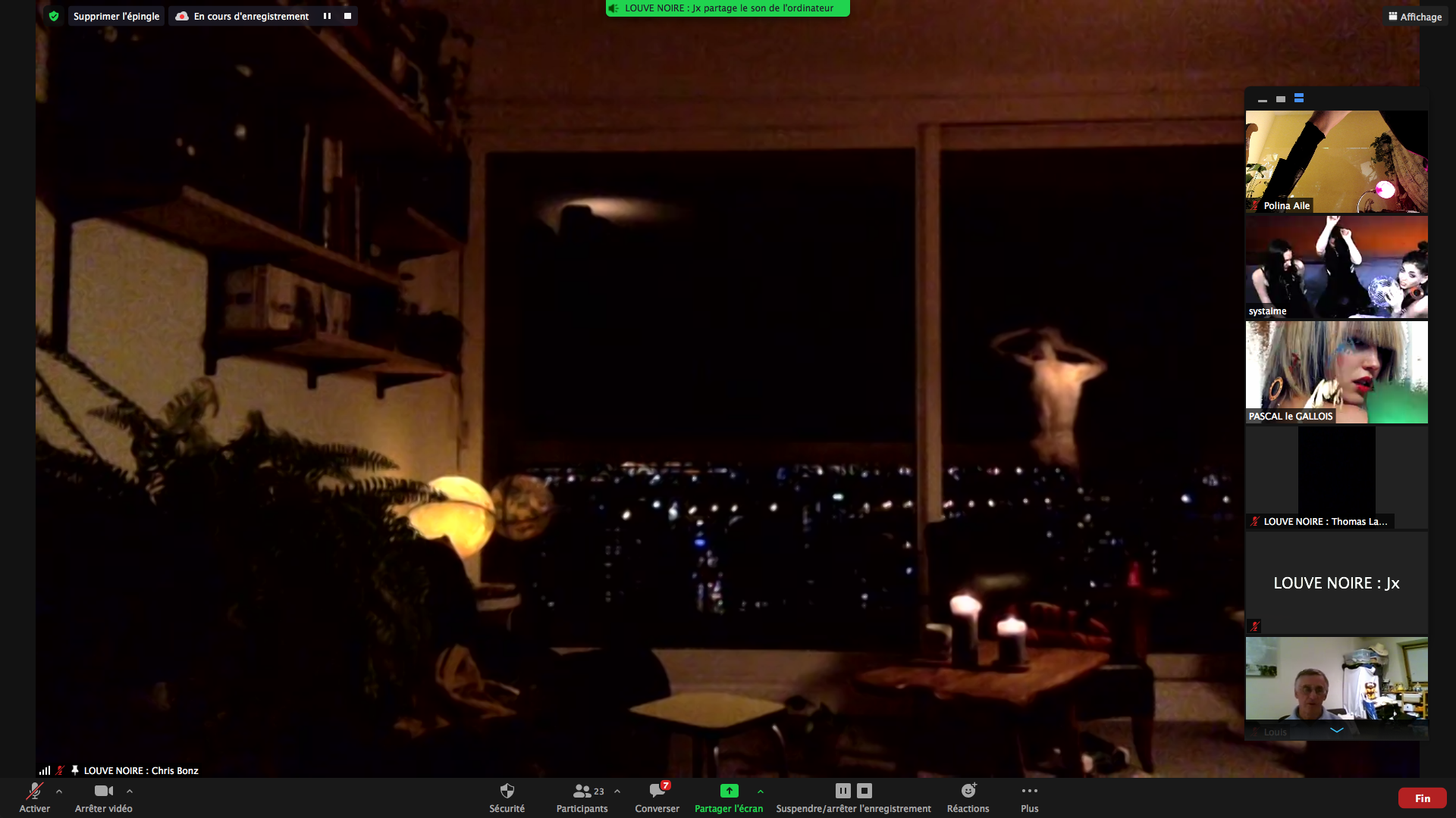 Troisième intermède Aile Polina (La Ciotat) x Louves Noires (Terre) x Systaime (Limoges) / Zoé Fornara (Paris) accueille et pilote la Party Louves Noires Nönude (Zoom.us)