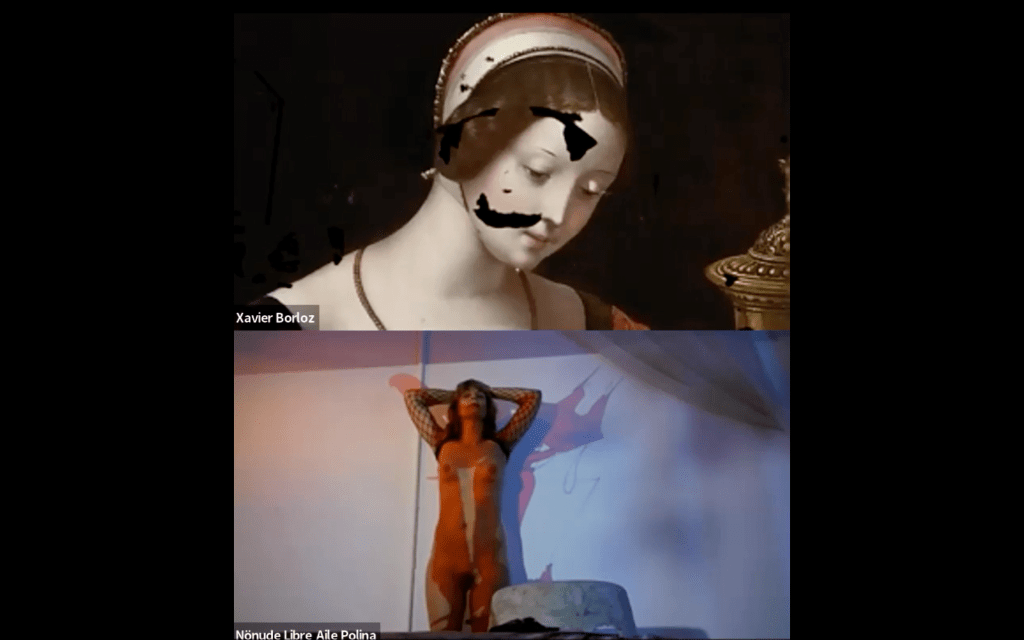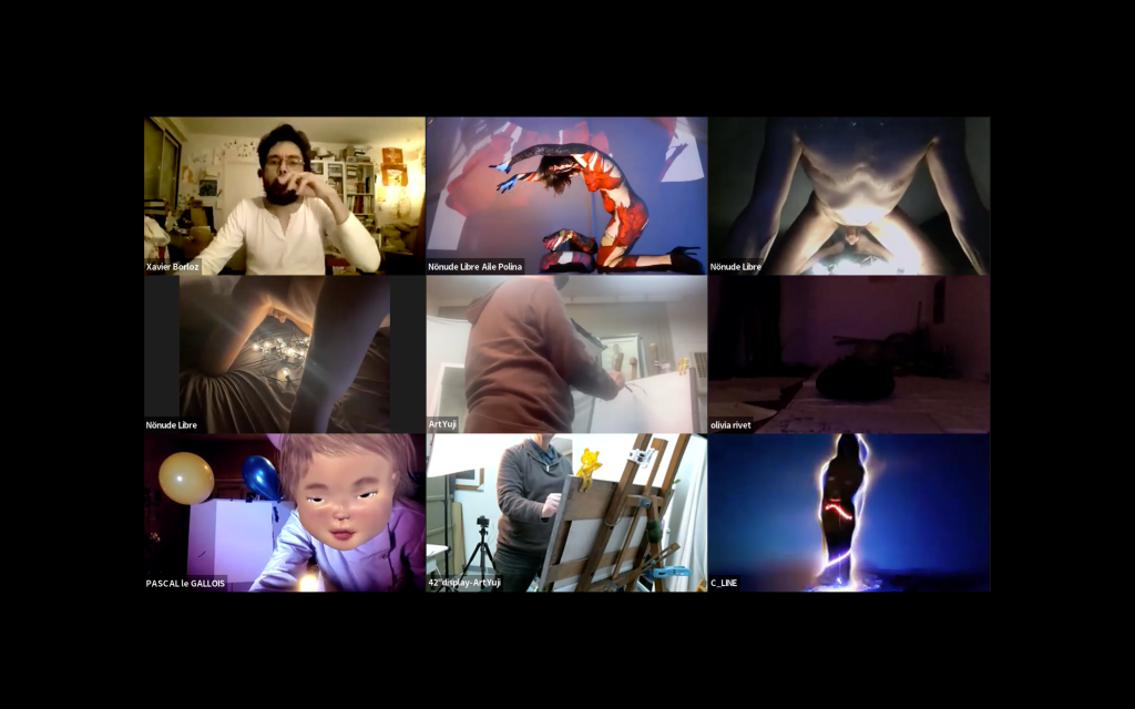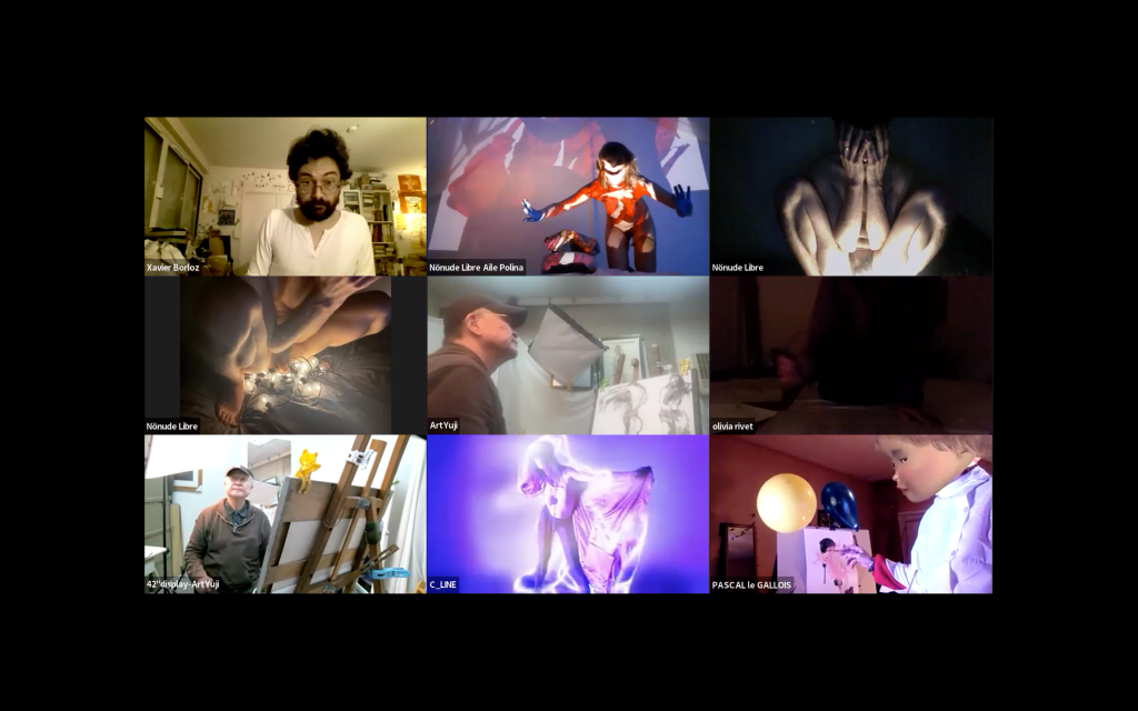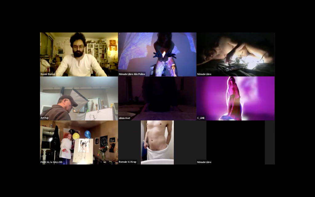 Octopuss Grafiloptica ◊ Le Nönude Libre, expérience LIVE de dessin-vivant, mené depuis 2012 par Sarah Cassenti et ses Complices Artistes. Ca s’est passé à plusieurs reprises dans la bouche de l’univers ouvert. Par la troisième édition, nous poursuivons par palier notre immersion sexuée sur le net et on air • Corps-étoiles, Corps-mouvants en simultané : les scènes vivantes se déroulent sur le mix sonore et l’écriture visuelle en continu. Les histoires se superposent et en créent une nouvelle. Les participants dessinent, dansent, pensent, collectent. Nous déployons notre joie ensemble. L’exaltation monte, la beauté éclatent. https://nonude.org/