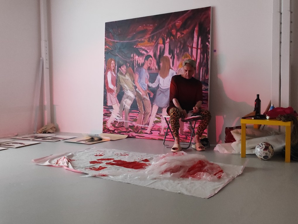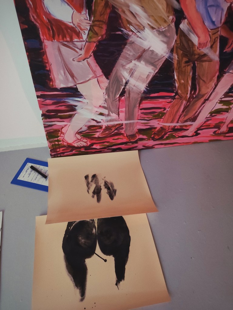 A l’étage, sur la mezzanine, nous installons un salon, pour se détendre, avec une œuvre artistique de chacun·e exposée autour de nous ** *