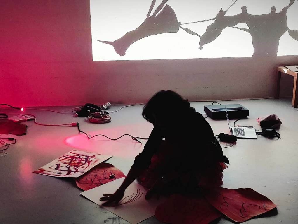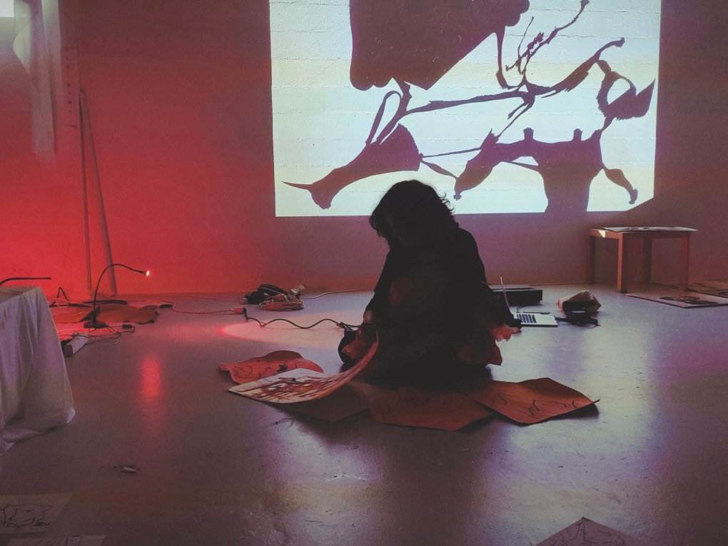 Parya Vatankhah • écriture et performance nous sommes la nature • dessins projetés de Claudio Pelati